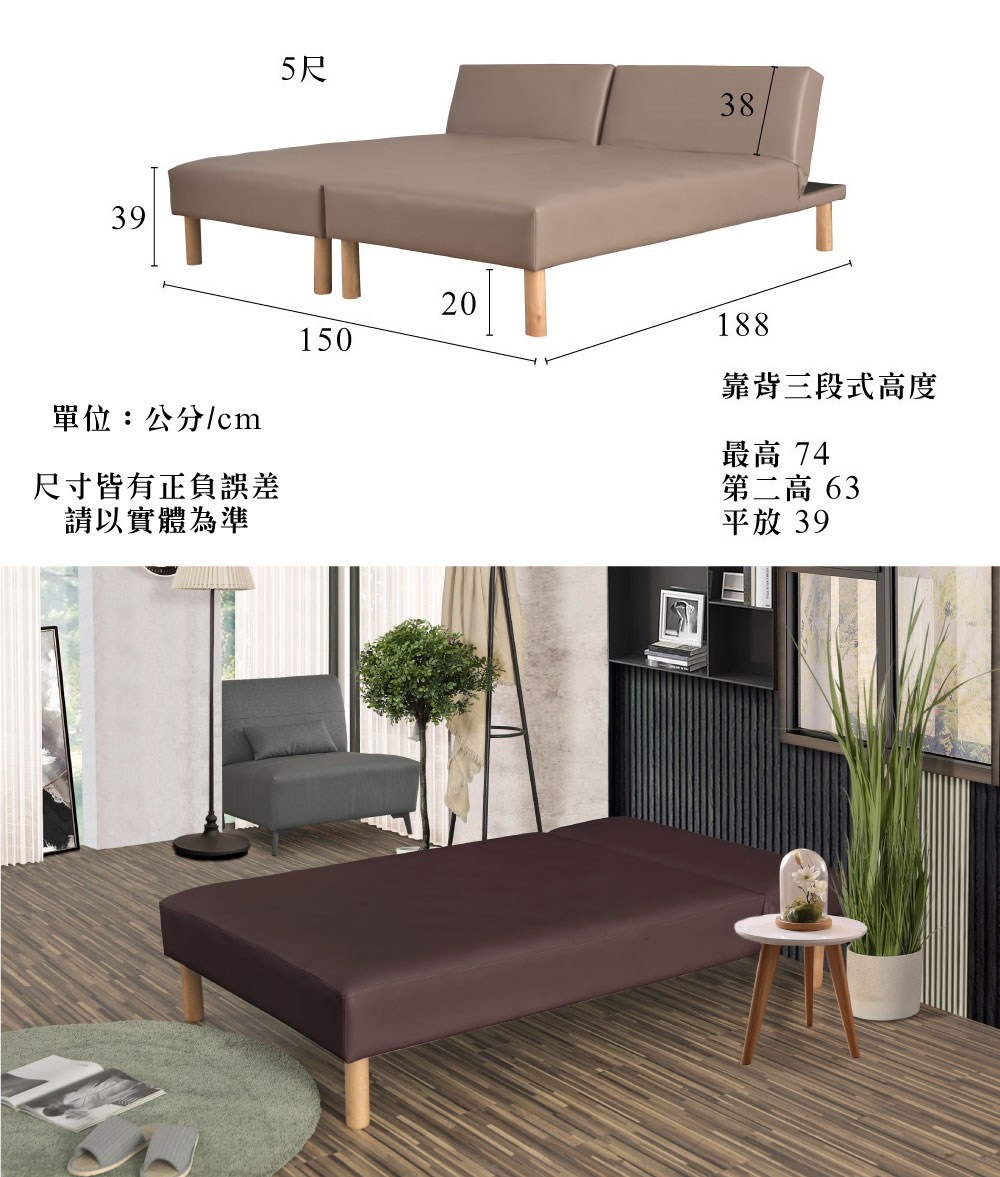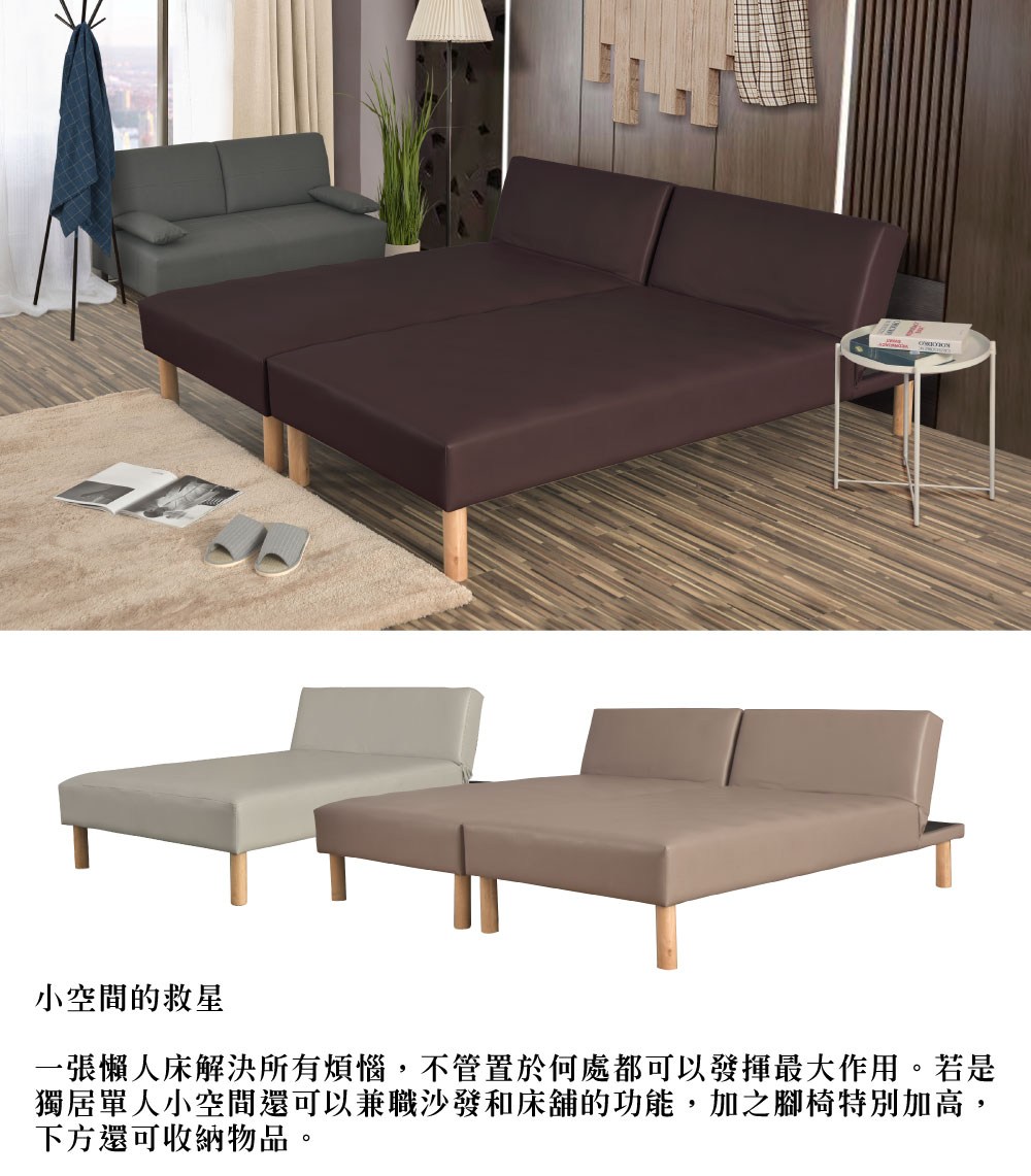 【UHO】萊姿-透氣皮三段式懶人床(S彈簧型) 3尺單人紫褐色