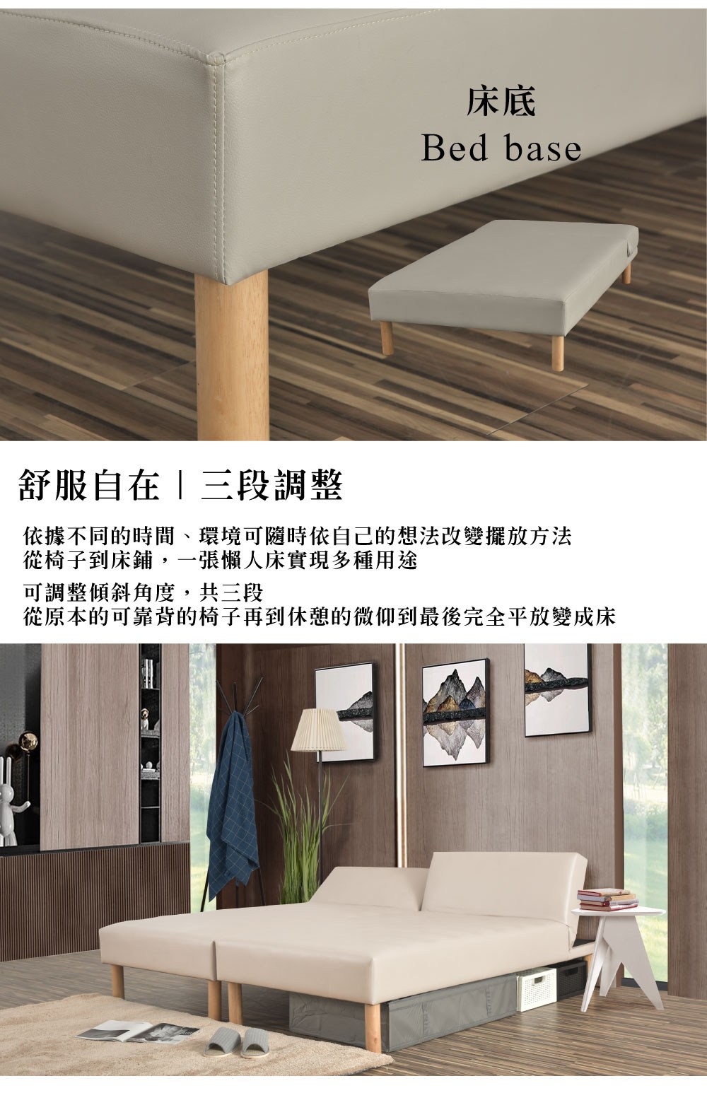 【UHO】勞拉-透氣皮三段式懶人床(硬型) 3.5尺單人淺灰色