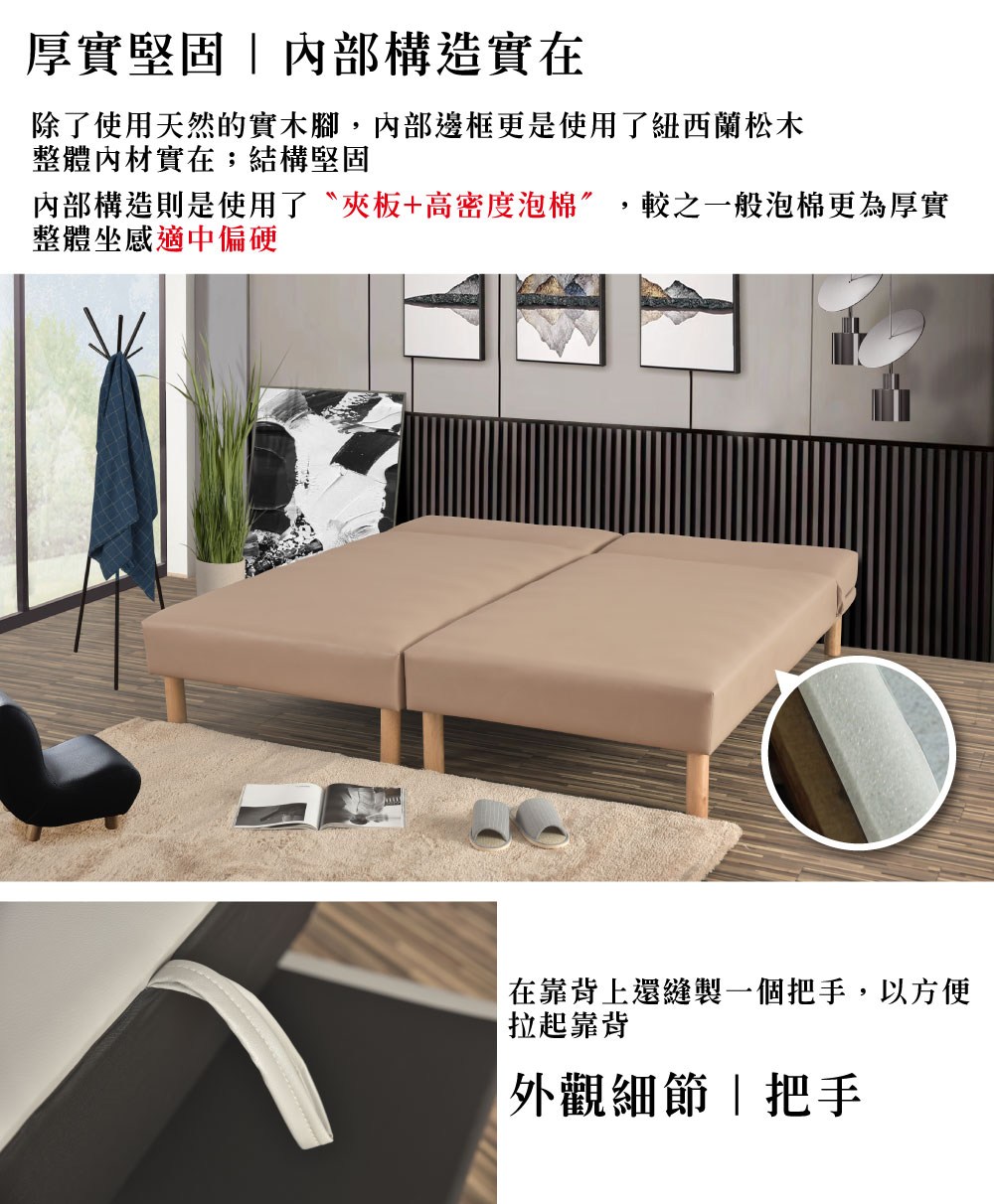 【UHO】勞拉-透氣皮三段式懶人床(硬型) 3.5尺單人嫩膚色