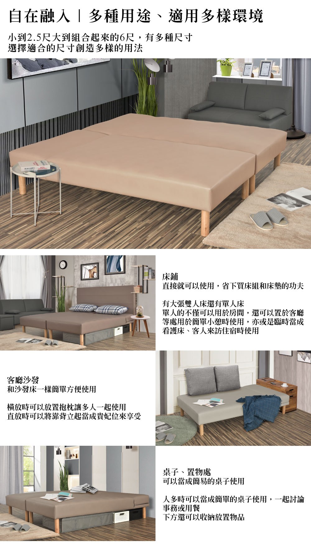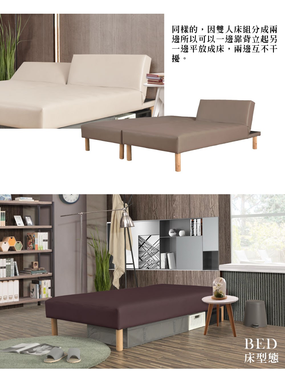 【UHO】勞拉-透氣皮三段式懶人床(硬型) 3尺單人嫩膚色