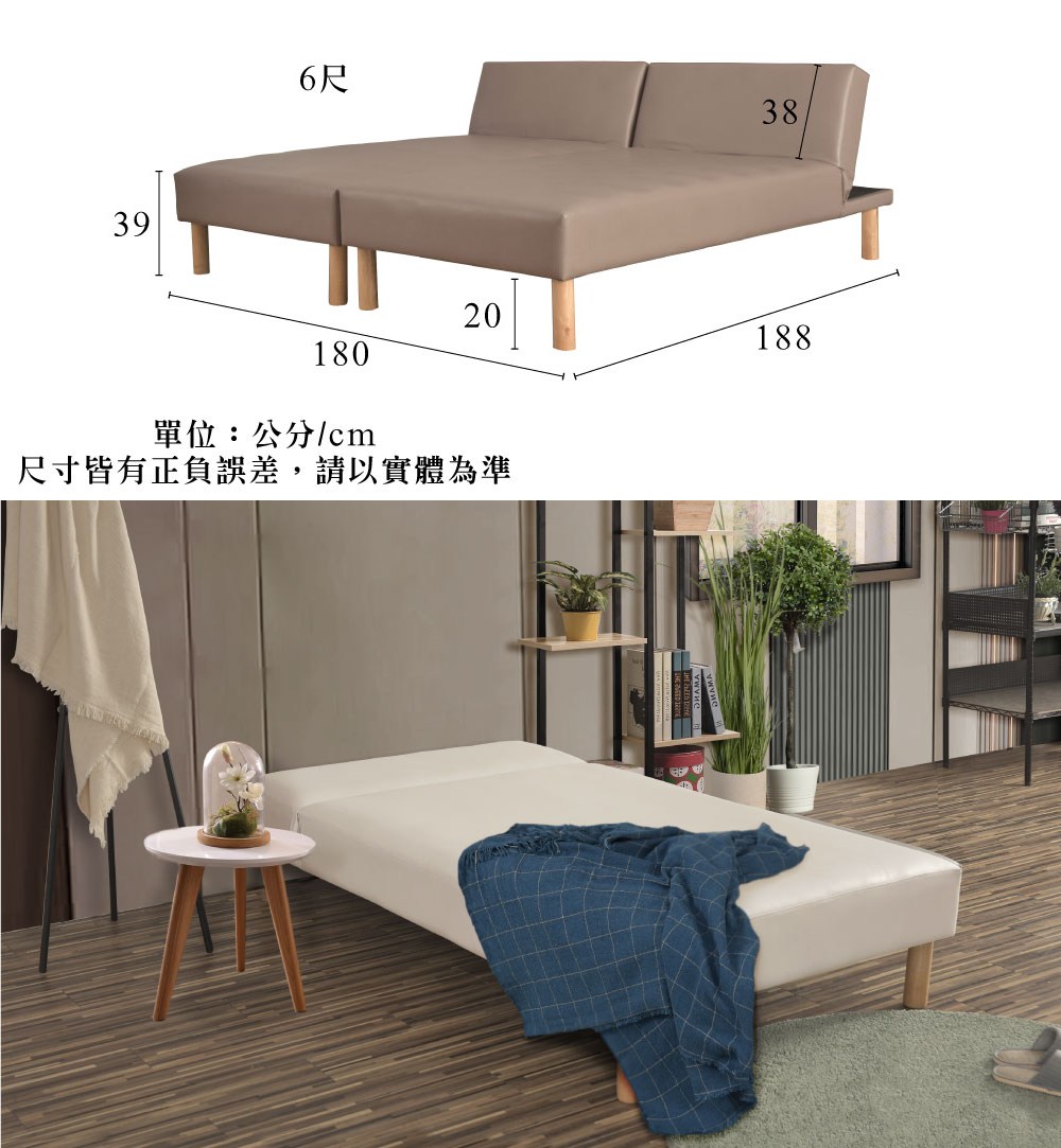 ASSARI-格蘭姆布紋皮沙發床(寬180x深120x高95cm)