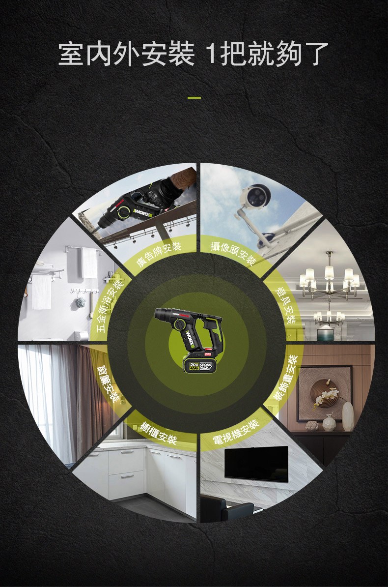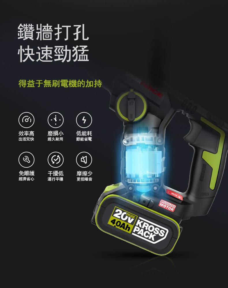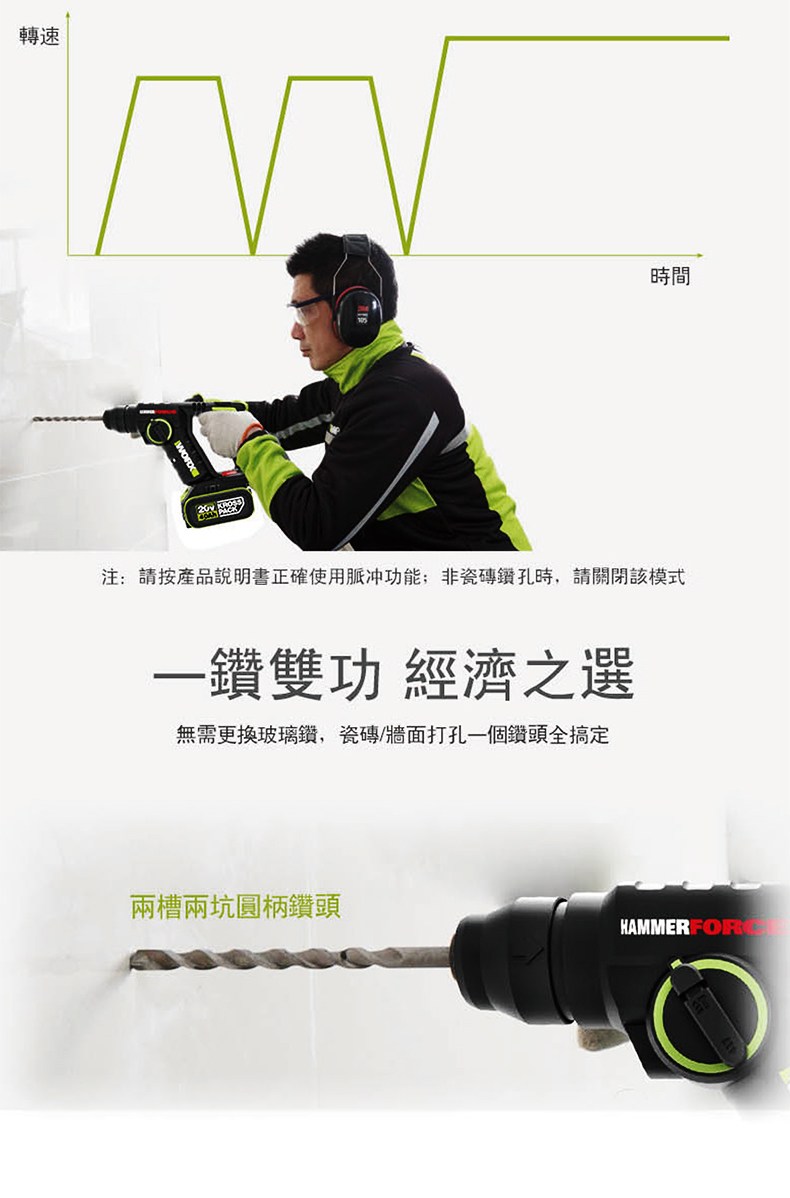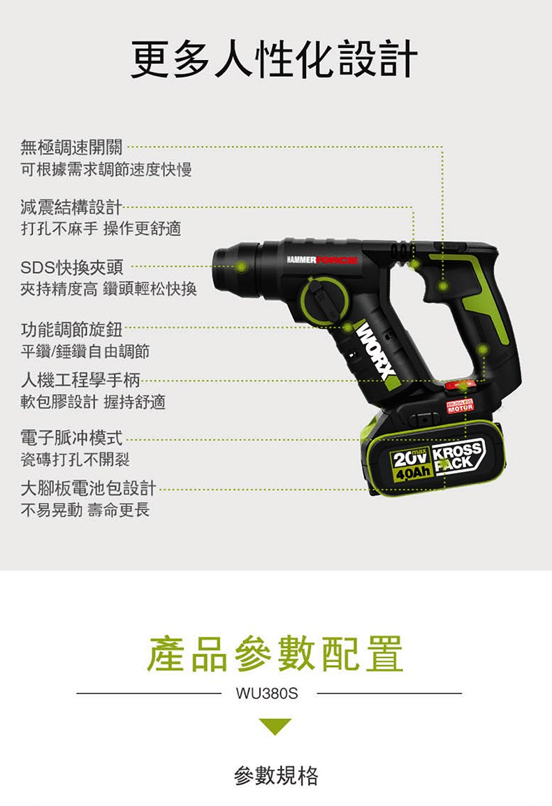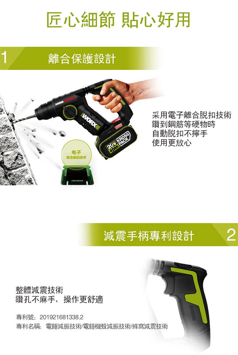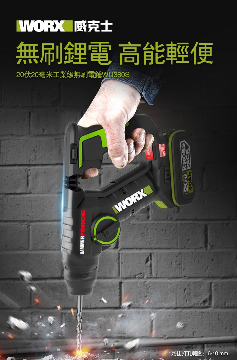 WORX 20V 26mm無刷電錘6.0ah*2 WU399
