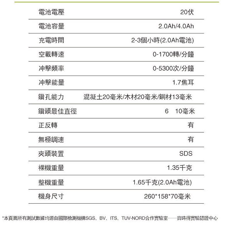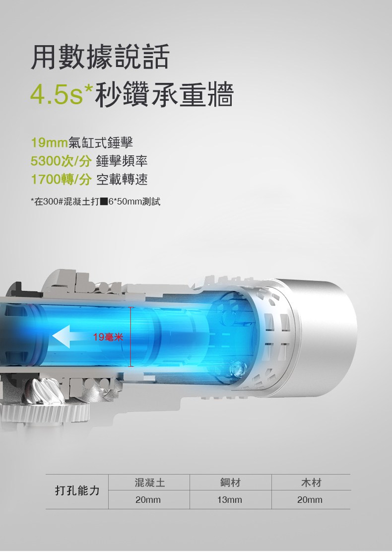 20V 20mm鋰電無刷電錘 WU380S.5