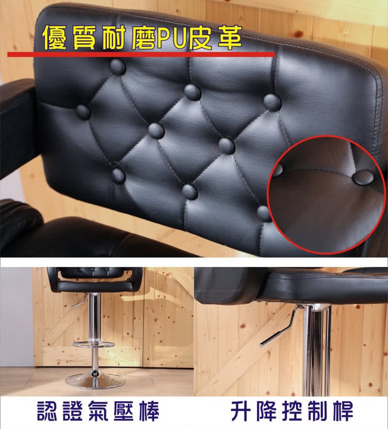 【頂堅】高級精緻PU皮革椅面-吧台椅/高腳椅/工作椅/升降椅/餐椅-黑黑色