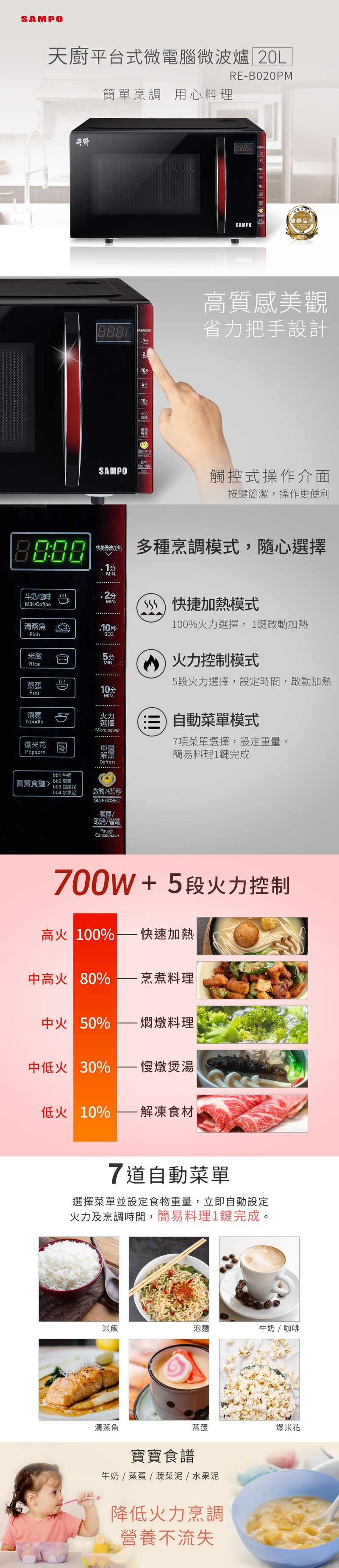 SAMPO聲寶 天廚20L微波爐 RE-N120TR