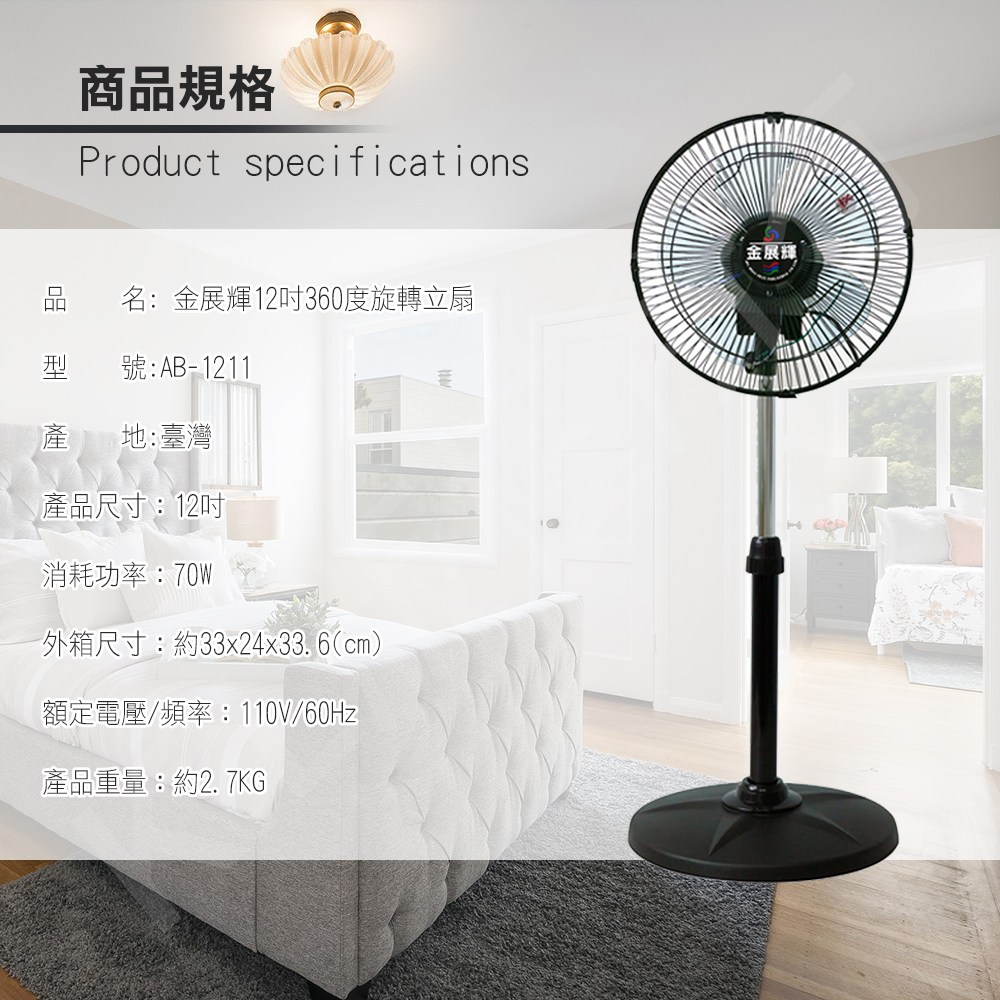 金展輝廣角對流復古12吋工業立扇AB-1211_廠商直送