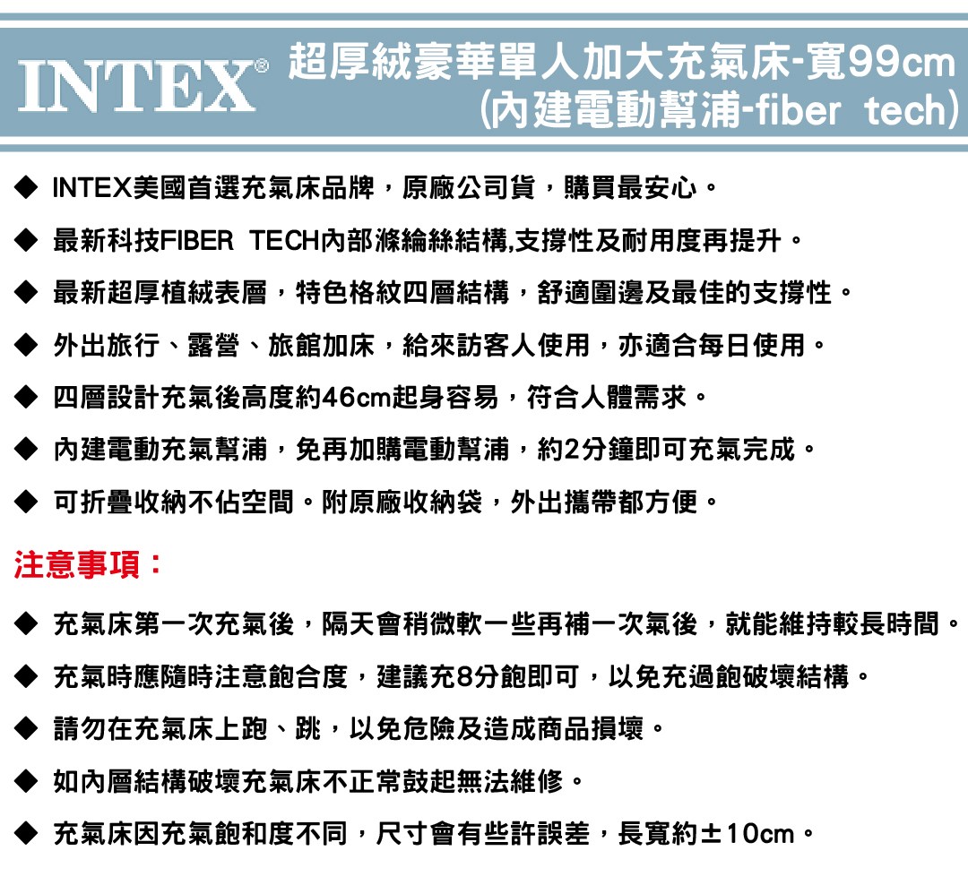 INTEX 豪華加高雙人加大充氣床墊-寬152cm (64125ED)