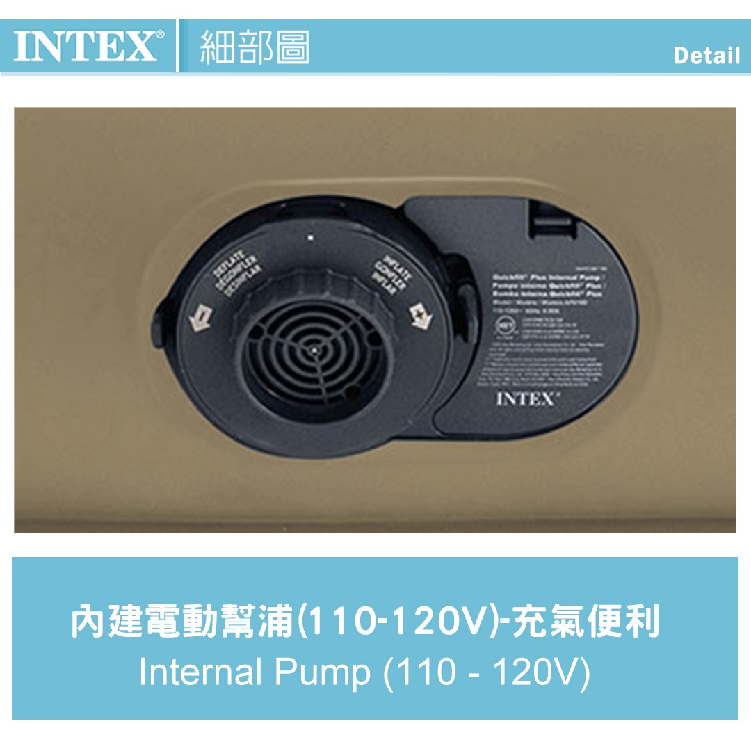 【INTEX】菱格紋豪華舒適雙人加大充氣床-附床頭片-內建電動幫浦(64447)