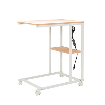 【慢慢家居】旗艦款-氣壓式無段升降移動邊桌 (可折疊 充電 升降桌)氣壓升降桌-白桌面