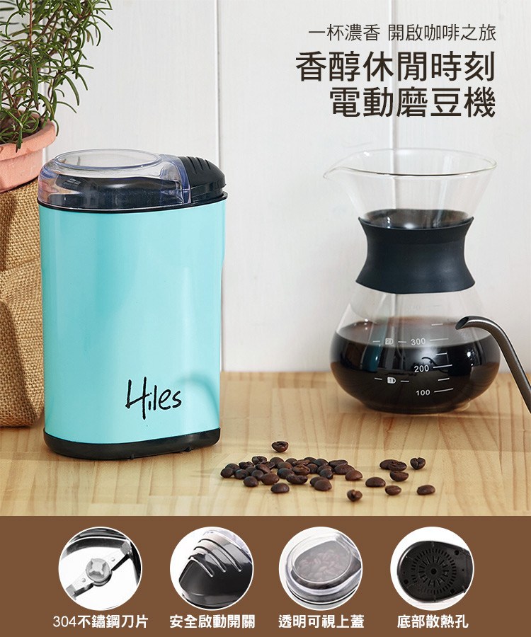 Hiles 電動咖啡豆研磨機/磨豆機+凱飛304不鏽鋼咖啡手沖壺250ml