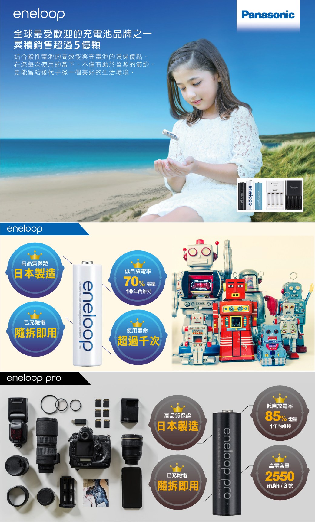 【Panasonic國際牌】2000mAh即可用eneloop鎳氫充電電池3號4入(日本製BK-3MCCE4BTW)