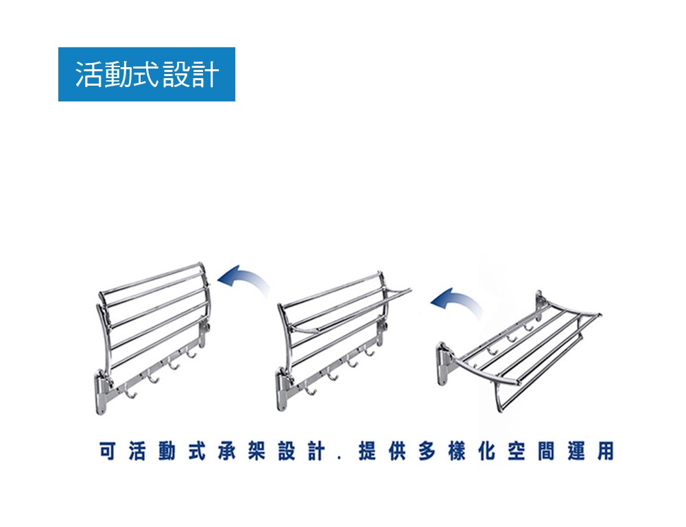精緻活動置衣毛巾架-可掀式