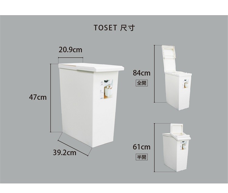 【日本天馬】日本製 e-LABO深型掀蓋式垃圾桶-45L-白