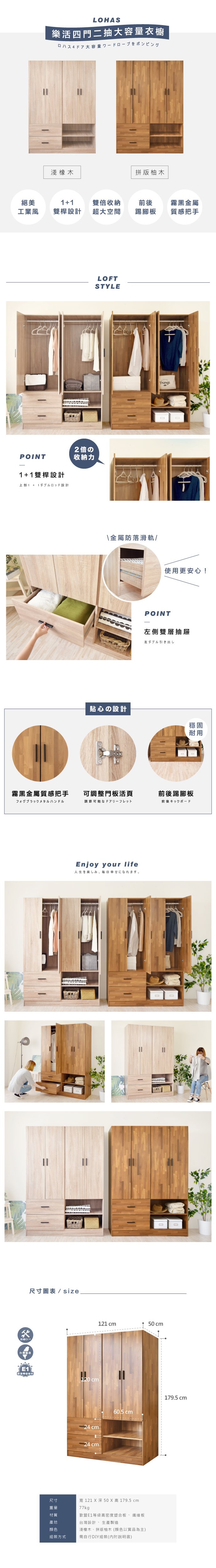《HOPMA》美背鄉村四門二抽大空間衣櫃 台灣製造 衣櫥 抽屜櫃 衣物收納櫃-淺橡(漂流)木