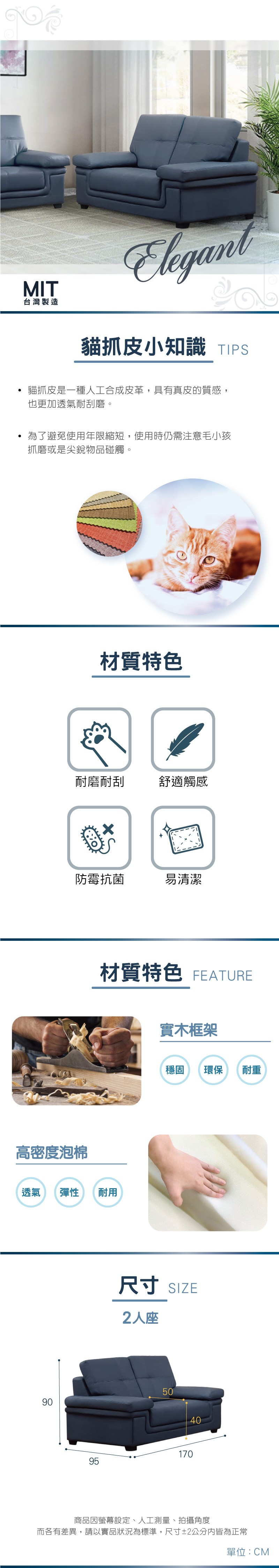 【Homelike】 喜家居雙人座貓抓皮沙發(2036)