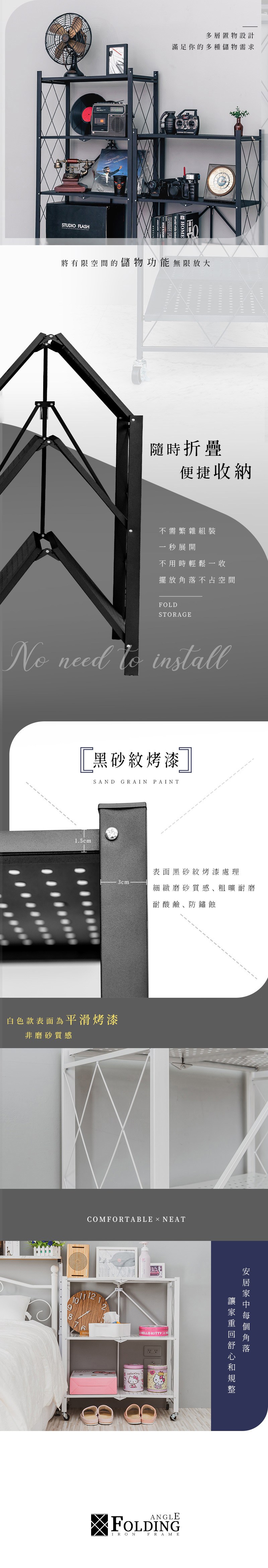 DAYNEEDS 日需百備~三層免安裝折疊角鋼貨架(1入) 款式可選