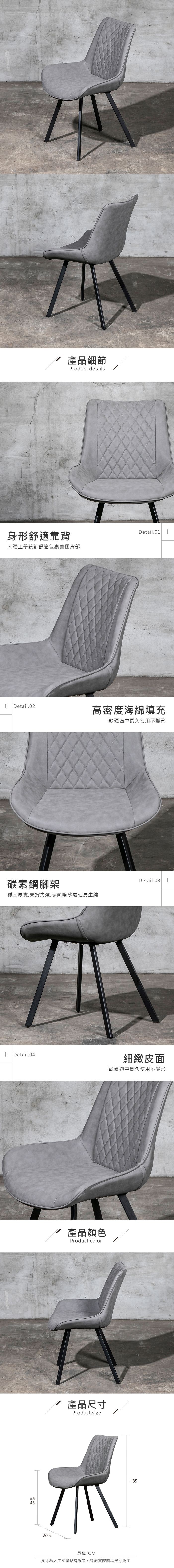 Boden-羅素實木皮面餐椅/單椅(灰色)-38x42x89cm