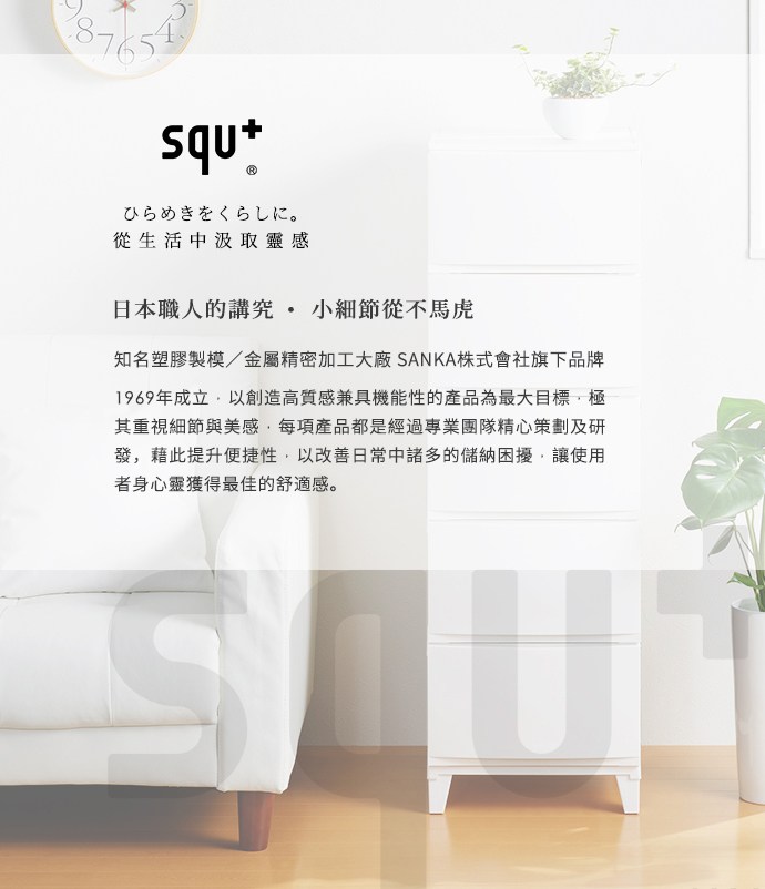 【日本squ+】Volca日製加高隙縫型手提洗衣籃-L-4色可選白
