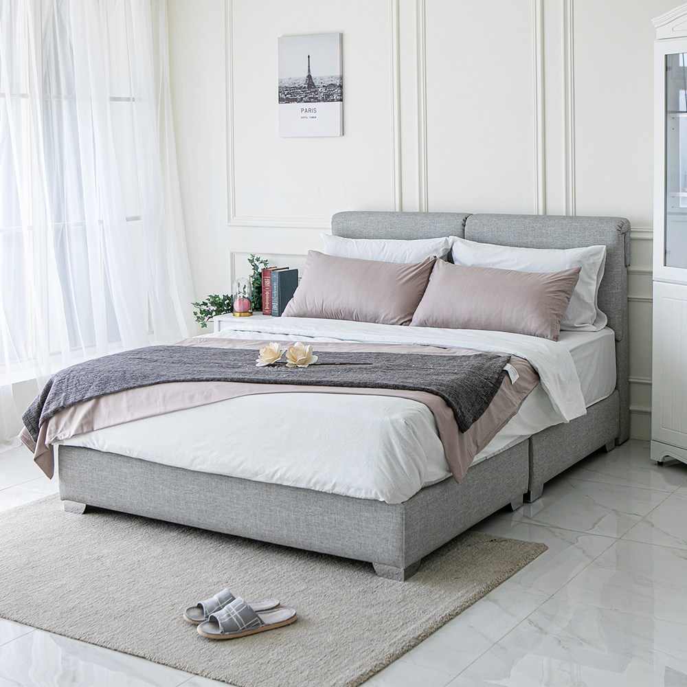 IHouse-厚Q豆腐 雙大6尺(貓抓皮床頭片+高腳床架)-房間兩件組/床組煙霧灰#627-22