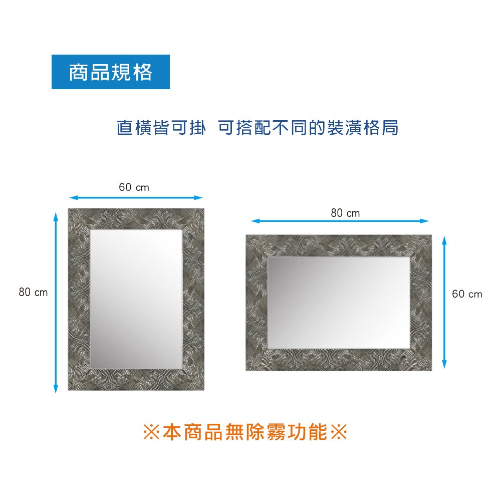 BuyJM 時尚膠框附掛勾長60x寬30公分壁鏡/壁掛鏡/玄關鏡