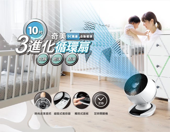 CHIMEI 奇美 DF-10A0CD 10吋 DC 易拆式觸控 3D立體 擺頭循環扇