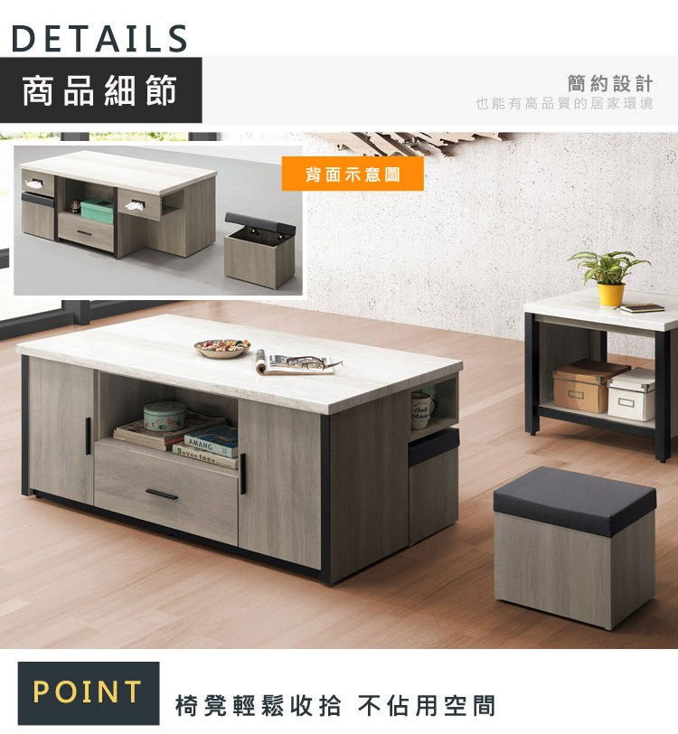 JP Kagu台灣製工業風大茶几-寬120cm(矮桌/咖啡桌/收納桌)木紋灰