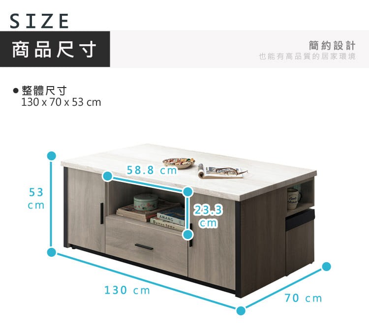 AS DESIGN雅司家具-賽凡姬耐磨4尺大茶几-120*60*47cm