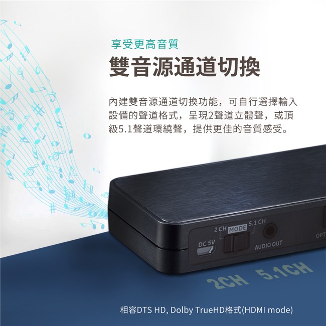 *內建雙音源 (2CH / 5.1CH) 通道切換開關