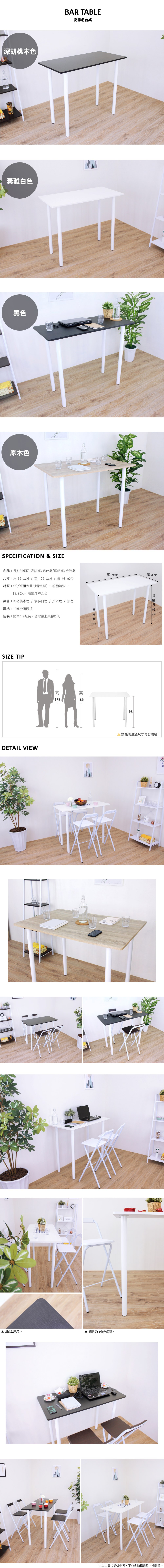 ◆大桌面[60公分x120公分]長方形高腳桌/吧台桌,桌角設計為圓弧型,使整體造型無銳角。