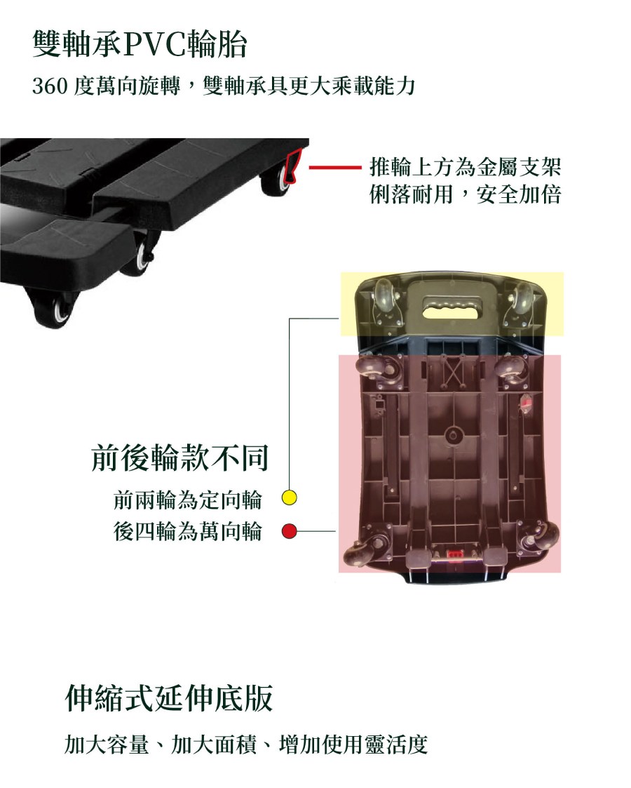 【得貹】塑鋼平板車 380x600mm 附4吋W全效輪 台灣製 /台