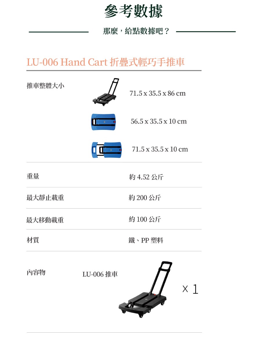 TRENY 輕量化塑鋼手推車 100KG