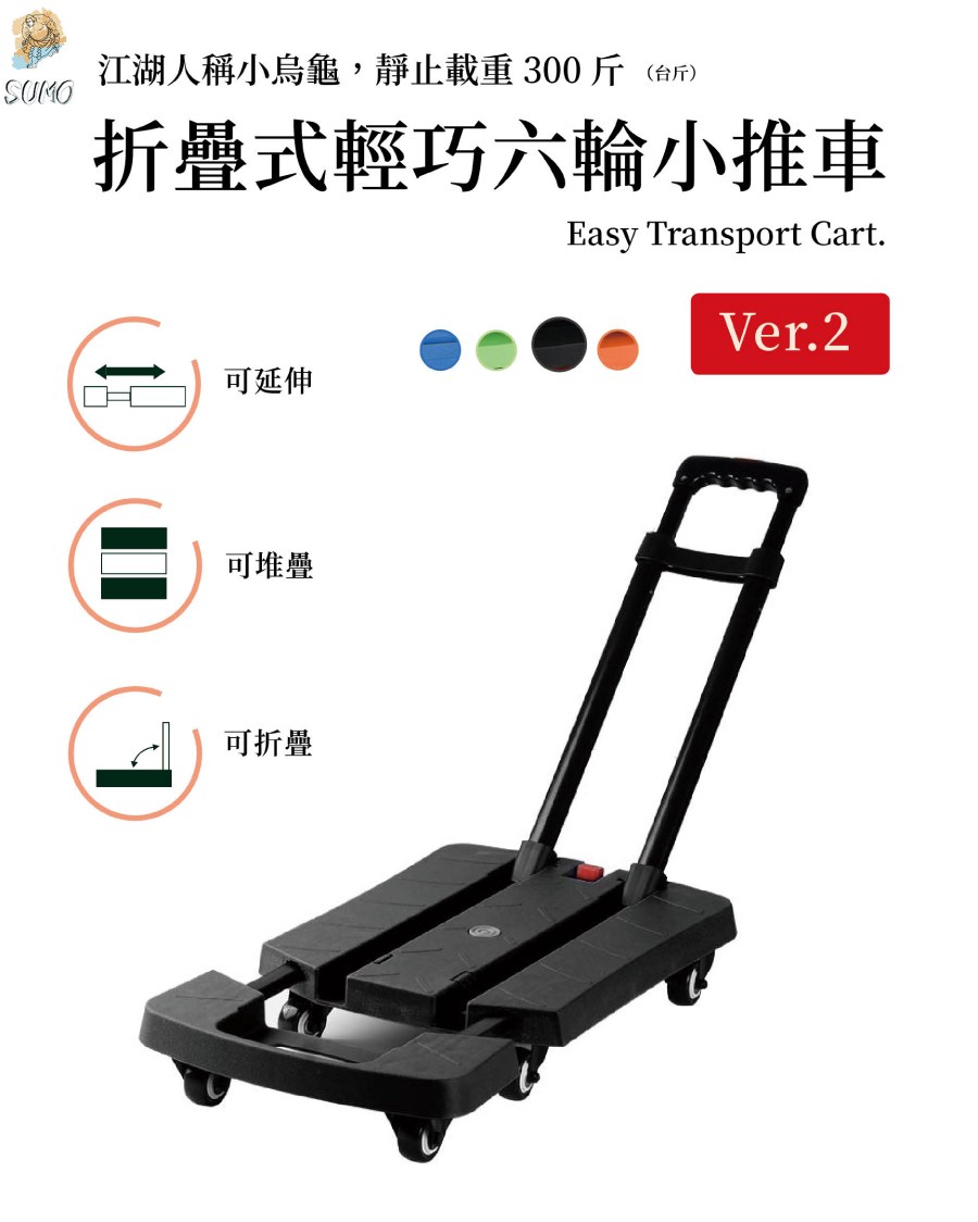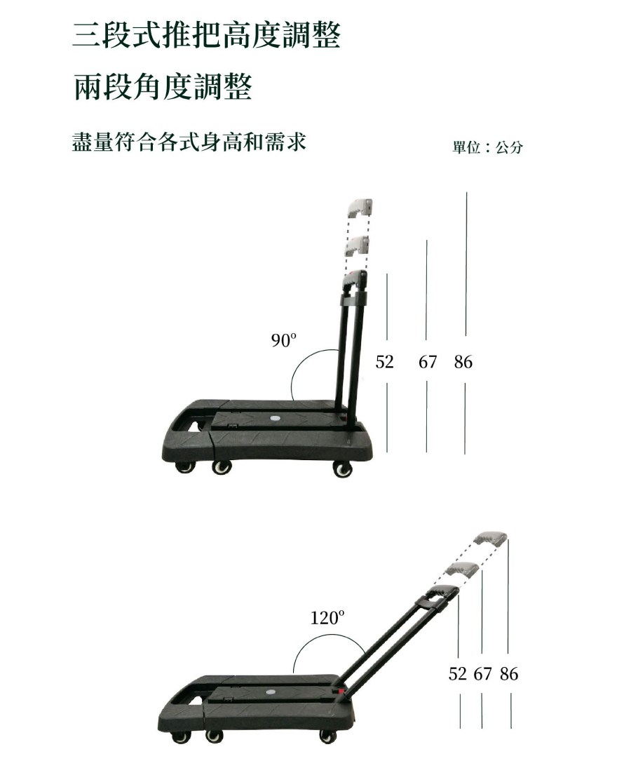 Japan Star日本星 可伸縮六輪輕便小推車 靜止載重兩百公斤!耐髒黑