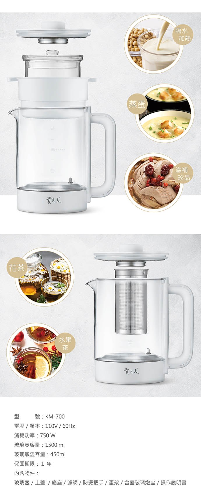 貴夫人 1.5L智慧調理壺(含燉盅) KM-700