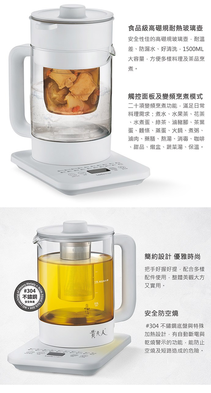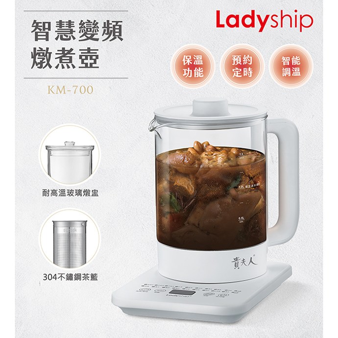 Ladyship 貴夫人 智慧級頻燉壺 含燉盅 耐高溫玻璃燉盅 304不鏽鋼茶籃 KM-700