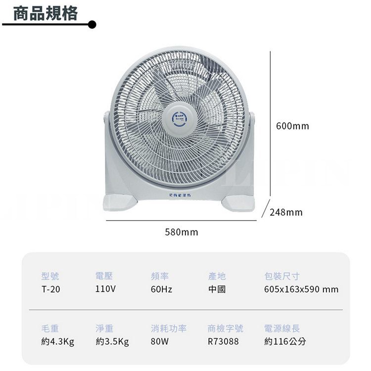 台熱牌 20吋渦輪循環扇/風扇 T-20
