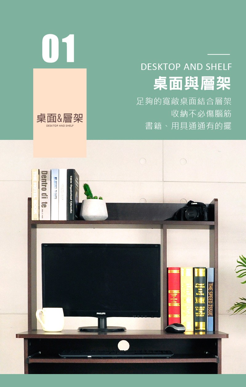 •貼心桌上主機架,可置放主機或物品書籍。