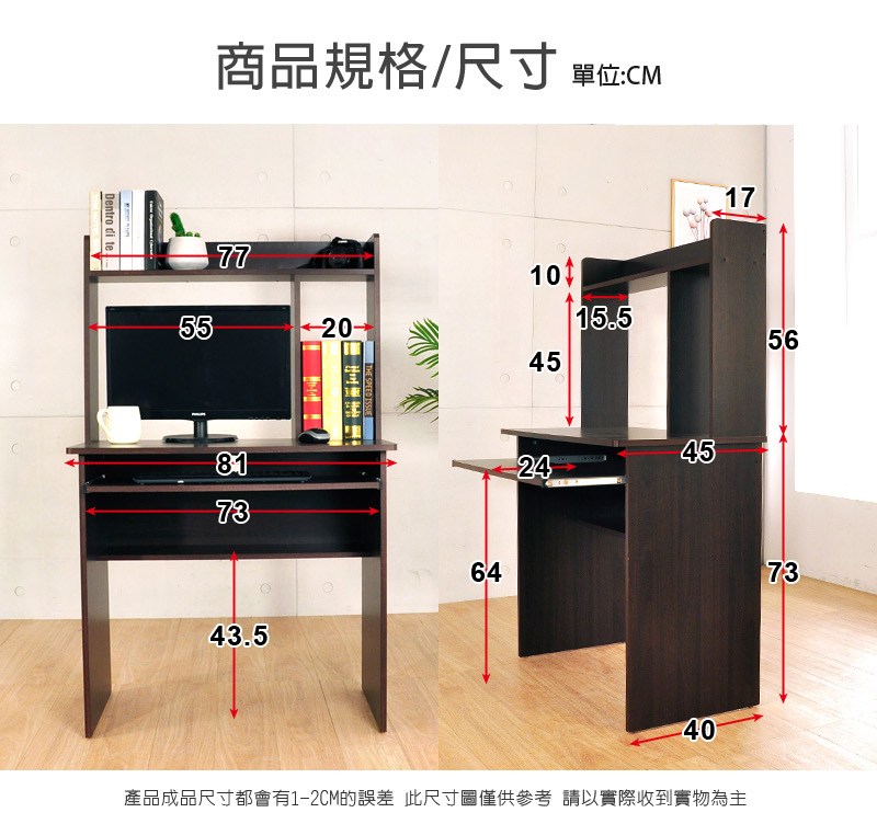 桌面尺寸:寬 45公分x 長80.5公分(詳細尺寸如圖所標示)