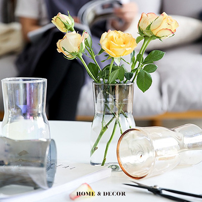 奧可利造型透明玻璃花器30cm 曲線形