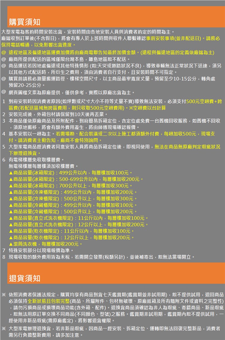 大型家電冷氣配送不包含離島地區以及部分山區,本島因配送區域眾多,無法逐一列出。