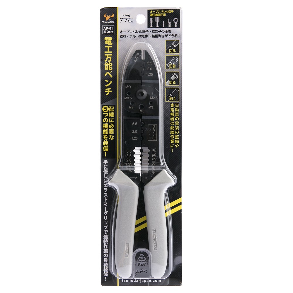 日本 角田 KING TTC 五合一萬能開放/裸壓端子壓接鉗 235mm 型號AP-01