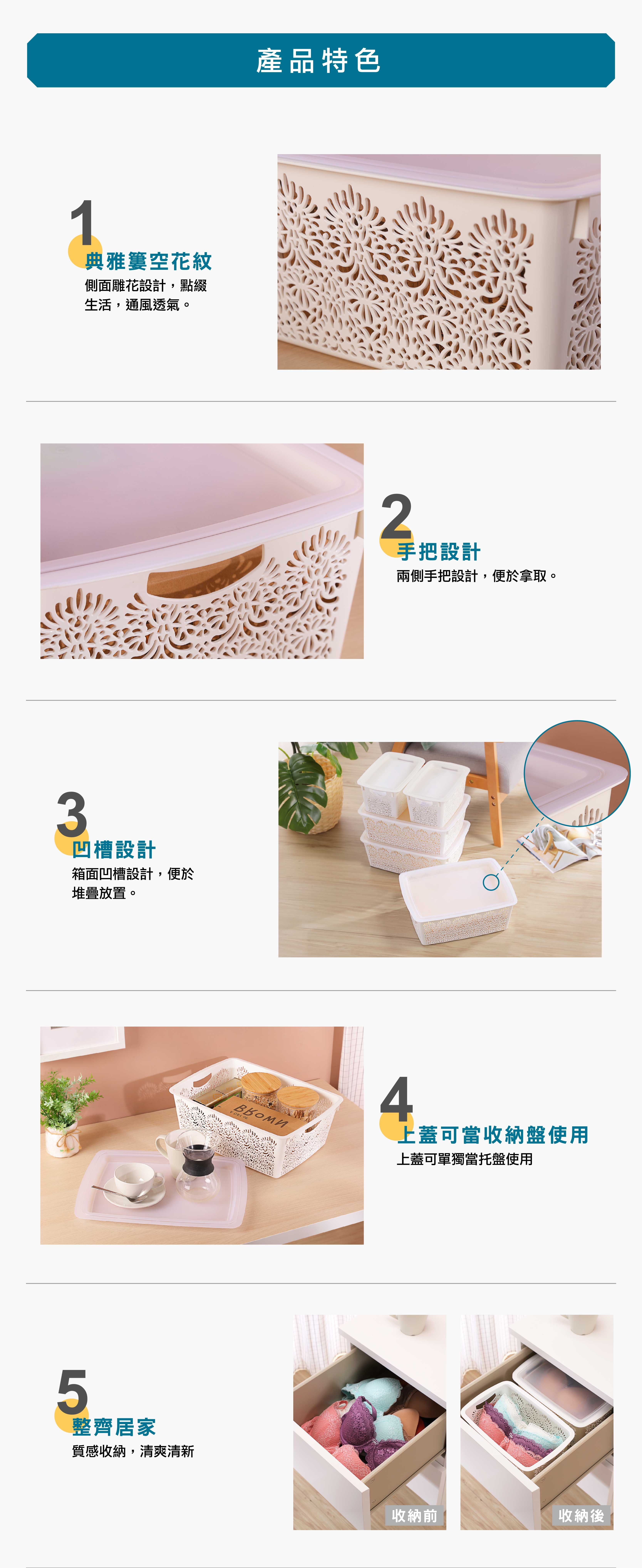編織收納籃 疊加收納盒 多尺寸/M號長方中(附蓋組) 無印風 台灣製