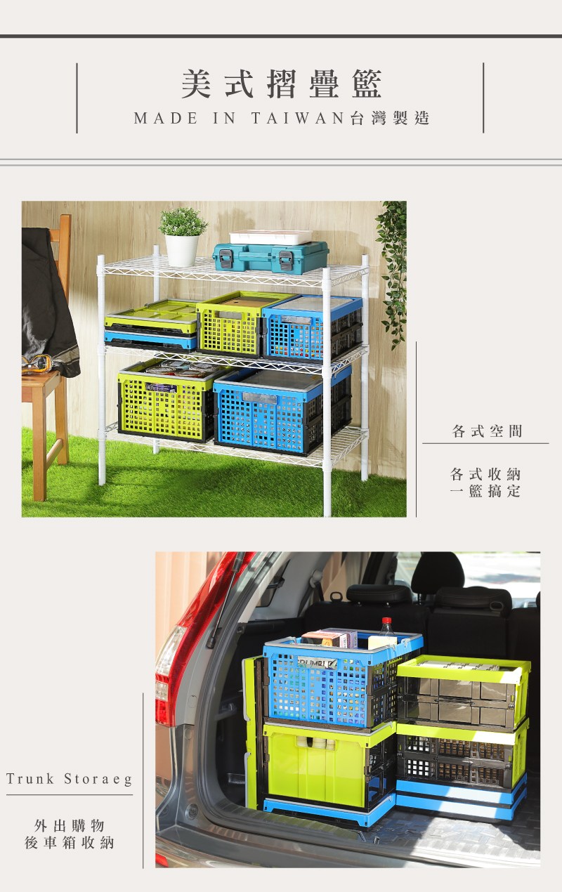 SUV疊疊休閒籃-深型 綠色 SF227-1