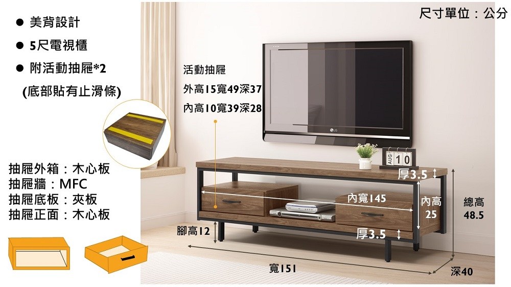 尺寸規格 寬 151 公分 X 深 40 公分 X 高 48.5 公分