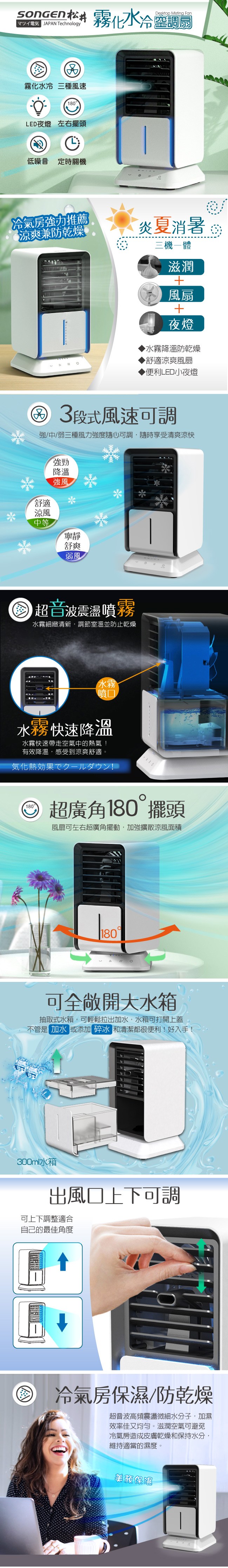 【SONGEN松井】まつい水潤清涼霧化水冷空調扇