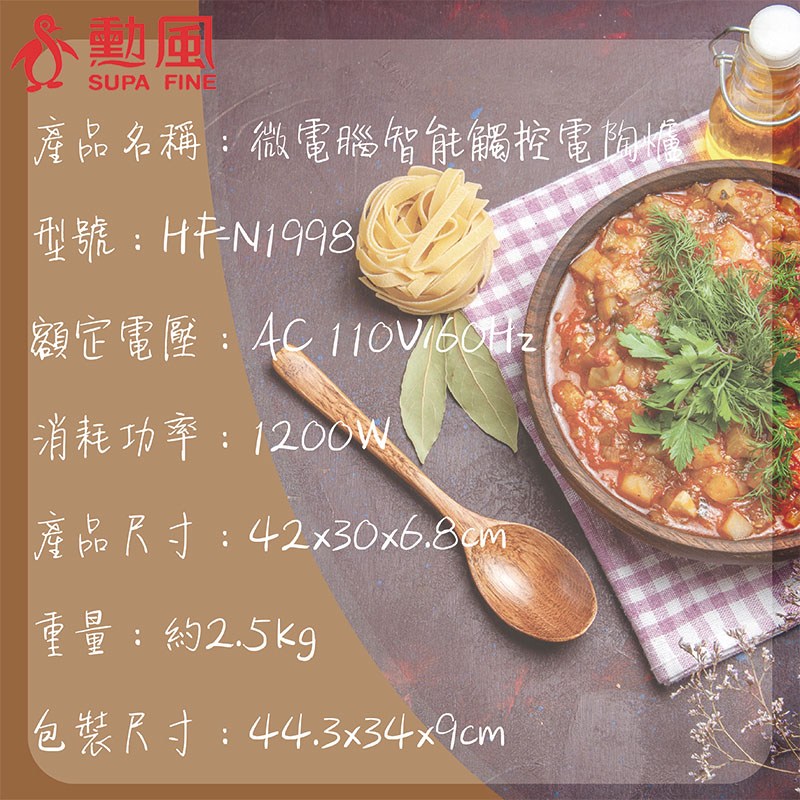 勳風 微電腦不挑鍋智能觸控電陶爐 HF-N1998