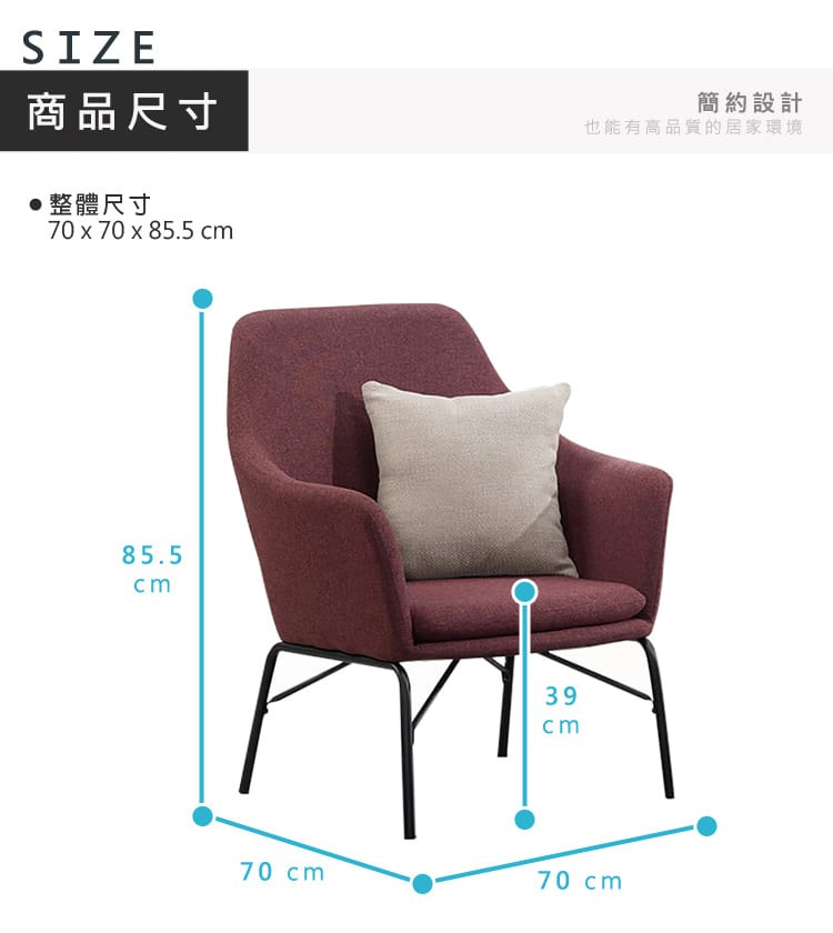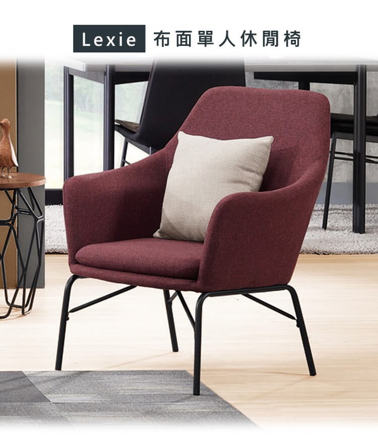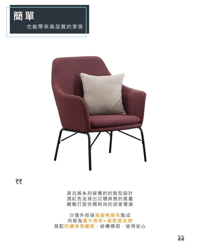 Boden-麥希亞紫紅色布沙發單人座椅/一人座沙發椅-贈抱枕
