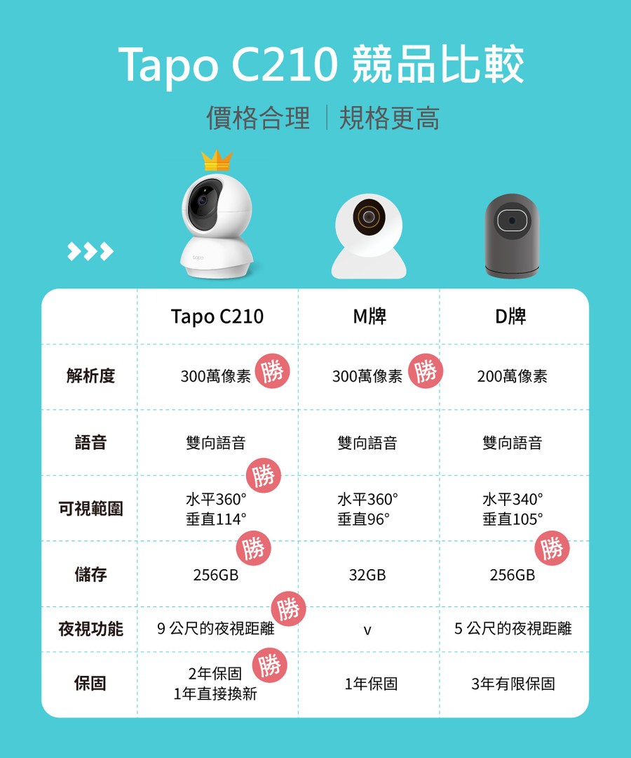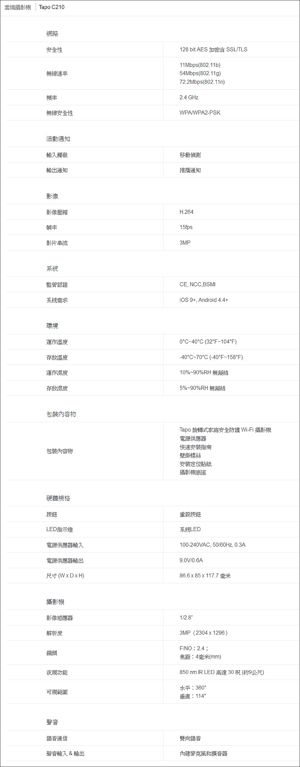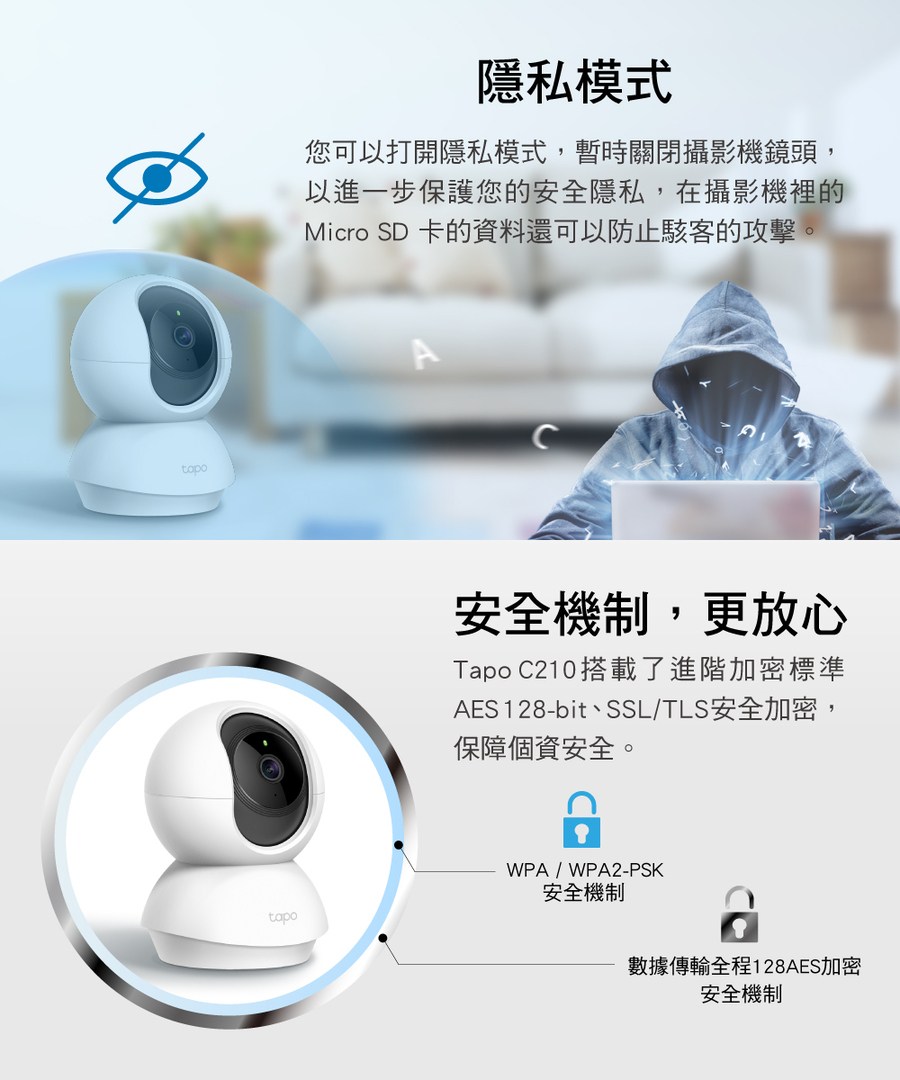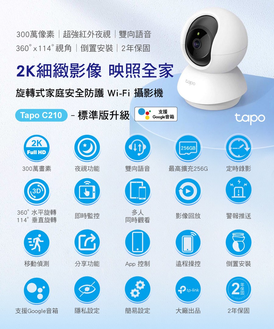 TP-LINK Tapo C210 旋轉式家庭安全防護Wi-Fi攝影機 3MP 2K高畫質