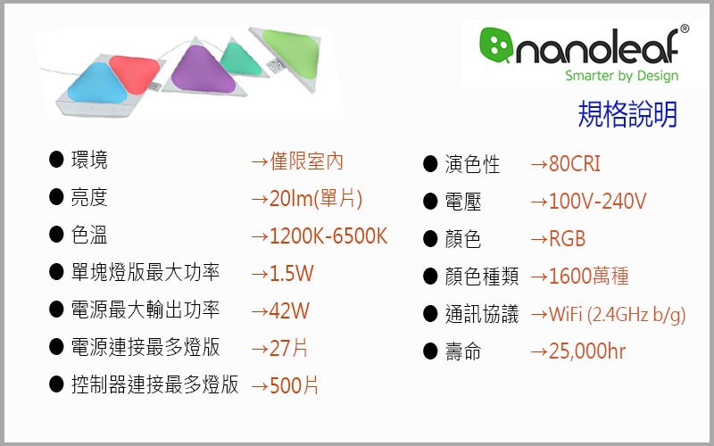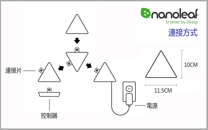 Nanoleaf Shapes 智能迷你小三角設計,打破傳統的拼接格局,提供智能居家裝飾更自由獨特性的設計靈感,甚至能不斷將其延伸下去把整面牆都變成佈景燈,讓您輕輕鬆鬆並可隨時改變造型的智能馬賽克照明燈!