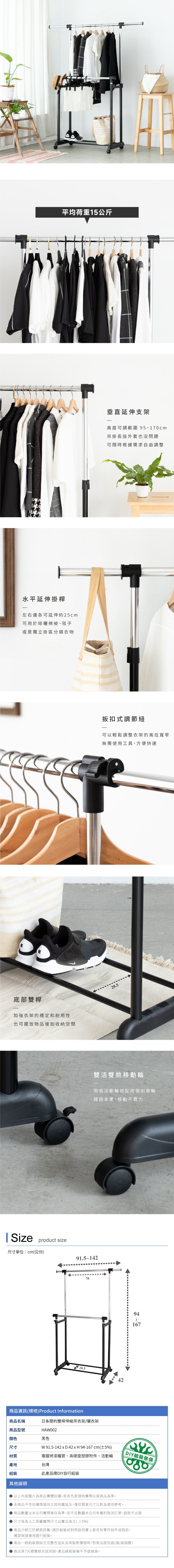 【Amos】日系簡約雙桿伸縮吊衣架/曬衣架黑色