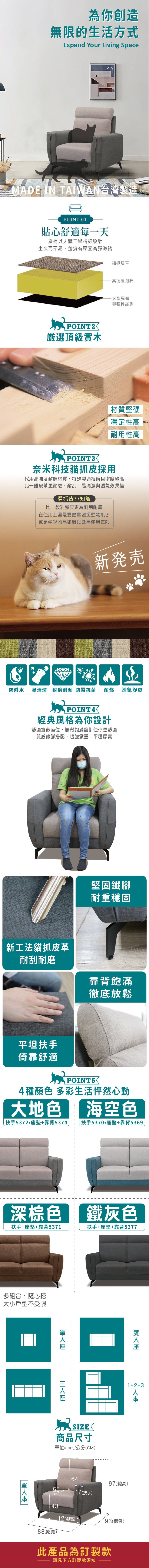 【本木】大和 台灣製耐磨貓抓皮1人坐沙發唐茶色#6701